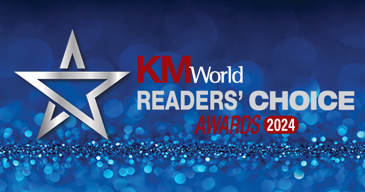 The KMWorld Readers’ Choice Awards is one way that readers of this magazine can recognize the companies that they value the most. These honors are determined by the votes of those who use KM solutions on a daily basis. They are the ones who know what works and what doesn’t and which companies are keeping up with KMers’ actual needs.